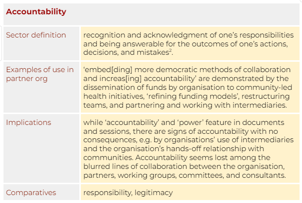 Comparatives: related terms and distinctions that matter (e.g. “accountability” vs. “responsibility”).
